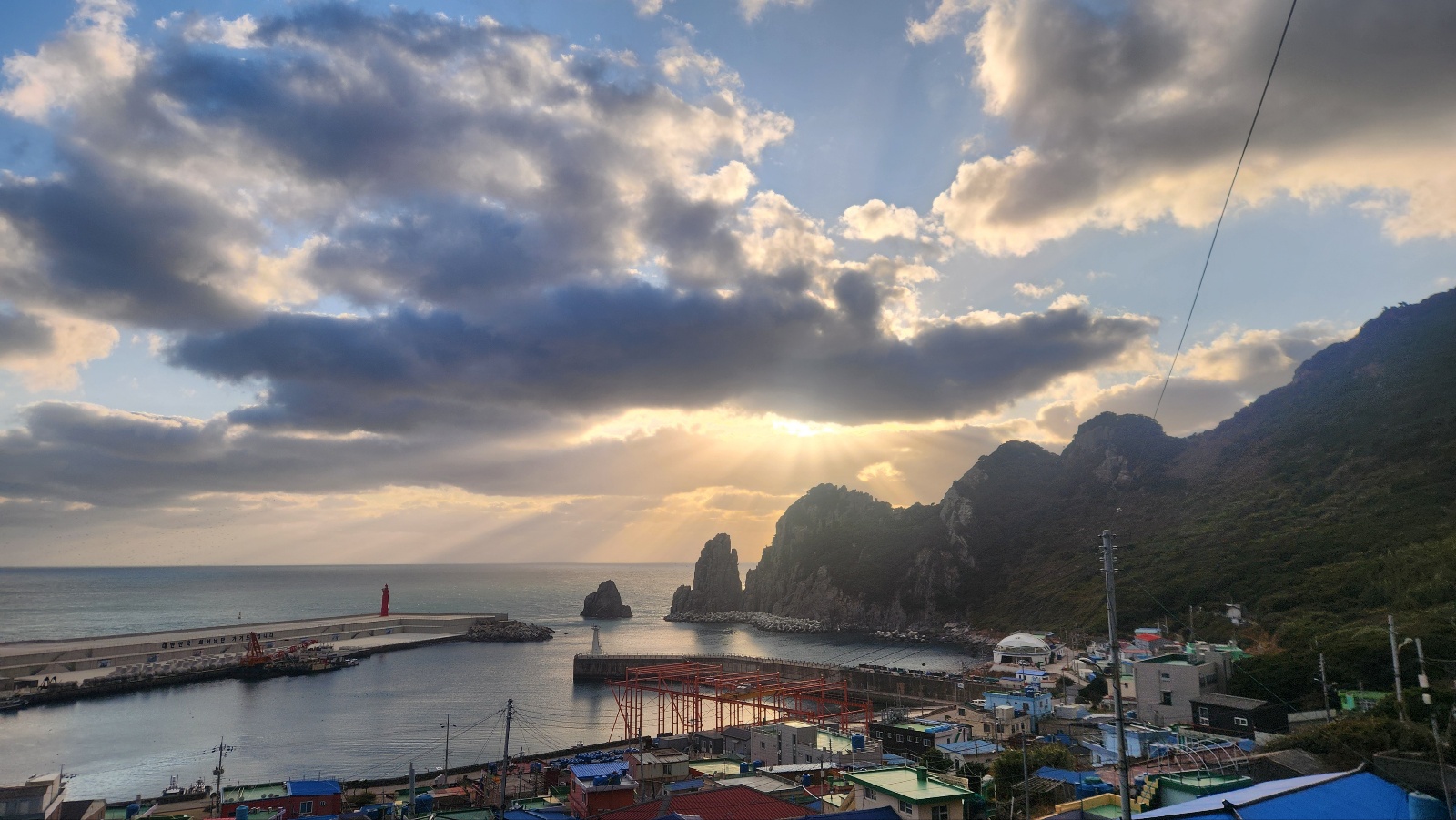 넓은 바다와 어렴풋이 보이는 3구마을입니다!