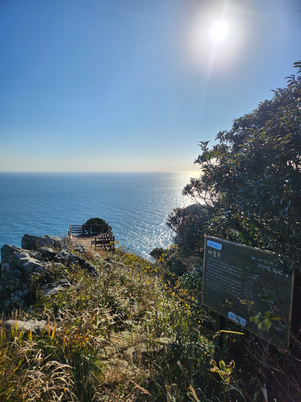 해뜰목 전망대에 다가가면 이렇게 시원한 칼바위와 그 뒤로는 끝을 알 수 없는 수평선이 나옵니다!